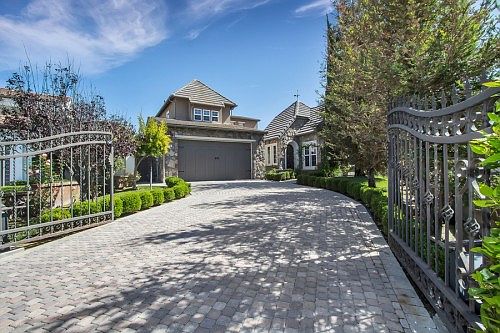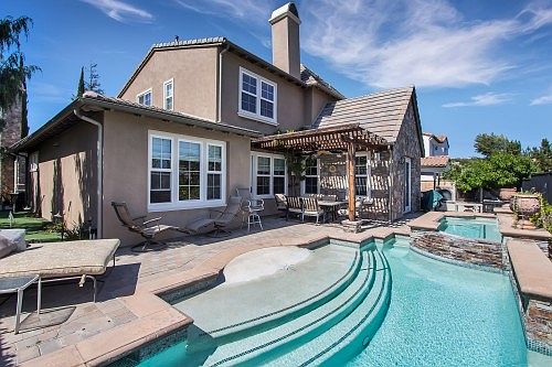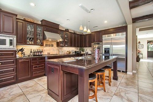 This exquisite home features an added fireplace in living room, large beams on ceilings, custom rock walls in dining room, pub and fireplace, crown molding, Kitchenaid refrigerator, leaded glass kitchen cabinets, leaded glass front door, wood shutters in living room and master bedroom, granite kitchen, granite family room fireplace, onyx master bathroom and shower, surround sound, bronze fixtures, 12' tall doors, $150,000.00 in outdoor upgrades that include pool large Jacuzzi, putting green, fireplace, built in barbecue, paver driveway, electronic gate at entrance of home, assorted fruit trees lemon, loquats, pomegranate, roses from Rogers Garden, avocado, white peach, water fountains (2) dog run with artificial turf, pavers for pool deck, electric outdoor heater in patio, ceiling fan, natural wood terrace, outdoor lighting. THIS IS A SHORT SALE AND IT WILL NOT LAST LONG