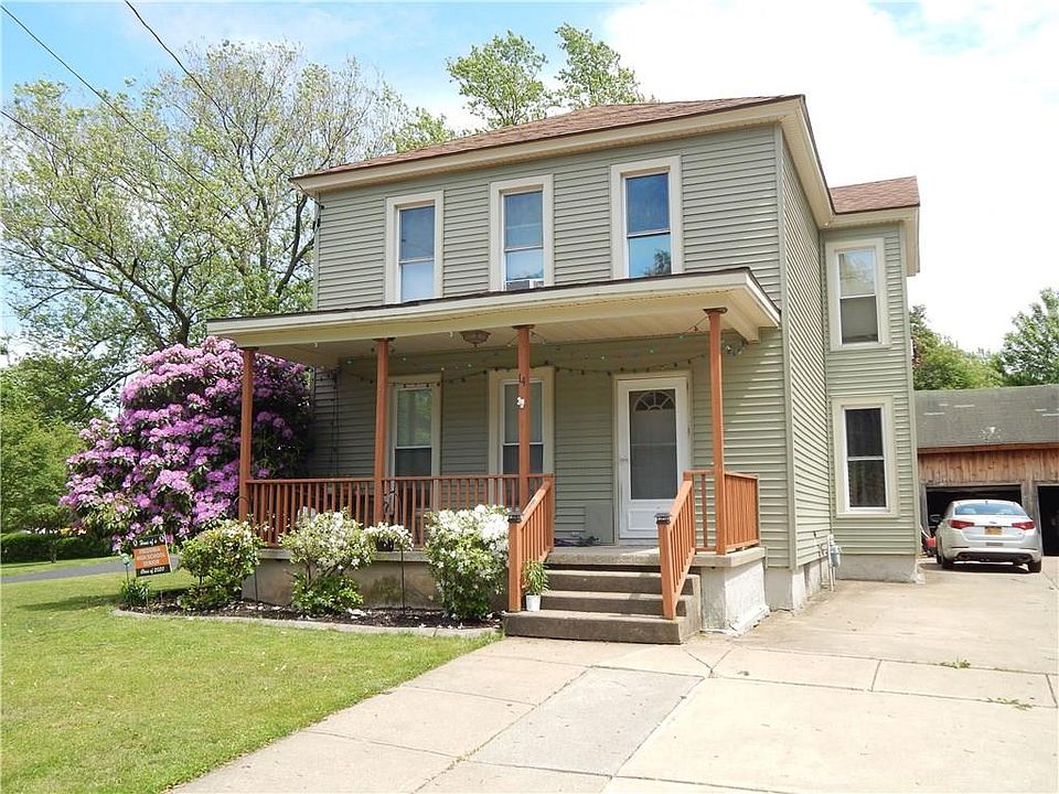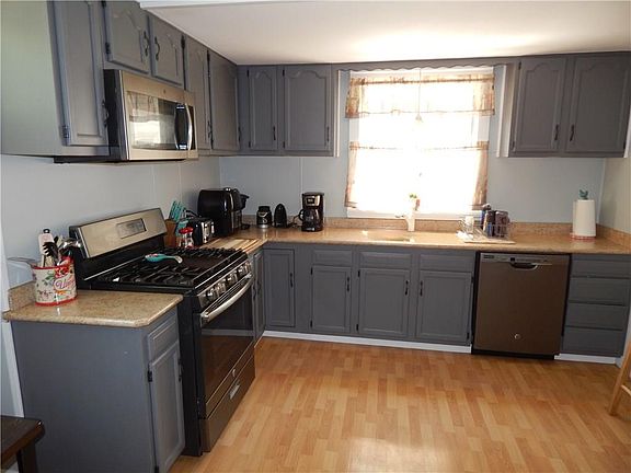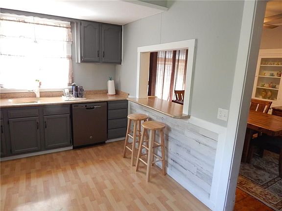 Excellent family home with many recent updates. This four bedroom , two full bath home has a modern kitchen with breakfast bar, large dining room with built ins and hardwood floors, 28 x 12 foot living room with pellet stove and hardwood floors, four bedrooms up with large master (one bedroom currently serves as a laundry room) along with two modern bathrooms with ceramic tiled floors, one on each floor ( upper floor is heated). Basement has new windows, newer furnace, hot water tank and circuit breakers. The exterior is completely maintenance free with newer roof, siding and windows. Newer concrete driveway. The garage is shared with new concrete floor, large attic with plenty of storage, newly built man-cave on the back (2014)along with new concrete patio.
