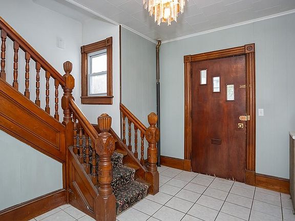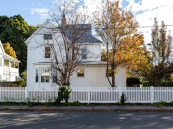 RARE FIND - Beautiful large colonial with many updates! This colonial features 5 bedrooms and 2 full baths!! Over sized Entryway features ceramic tiled floor with gorgeous wooden staircase. Formal dining room with hardwood floors & french doors lead you into formal sunny living room with wood burning fireplace and hardwood floors. Kitchen has ample cabinets, walk in pantry, glass back splash and range and refrigerator. There is also an updated full bath and a 1st flr extra large master bedroom w/double closet. Finishing off the main floor is a side entrance mud room. The second floor has 4 very large bedrooms all with hardwood floors and another updated full bath. Huge unheated Bonus Room completes the 3rd floor which could be used as an office or playroom. Nice corner lot with fruit trees and 1 car detached garage. Inviting front porch and fenced in yard.