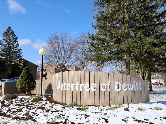 New 2 BD, 1 BA Condo Listing in Watertree of Dewitt. This is a low maintenance third/top floor unit with a low HOA and low taxes. Features include; spacious living room, galley style eat-in kitchen with sliding glass door to your own private balcony, closets and walk-in pantry. Electric baseboard heat adjustable in each room. Gas fireplace was added to supplement heat and unit has a window A/C. Laundry facility and additional storage on first floor. Enjoy all the amenities of Watertree of Dewitt including pool, tennis, community room, snow removal service, lawn and landscape care, ponds and trees. Ideal location close to highways, businesses, medical facilities, shops, restaurants and entertainment.
