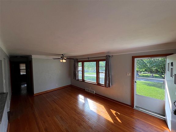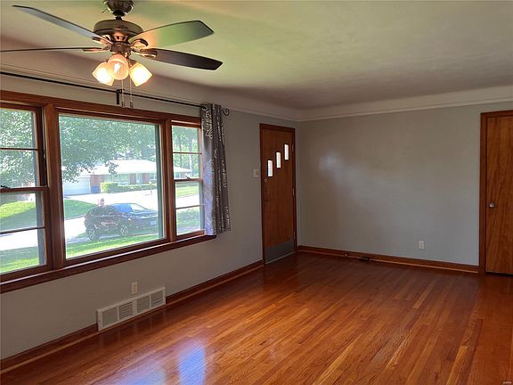 Check out this cute 3 bedroom ranch home on a large, fenced lot in St. Charles city close to parks, schools, shopping and Hwy 70! Spacious kitchen with new flooring and dishwasher. Original red oak wood floors throughout living areas and bedrooms. Three large picture windows make this home bright and welcoming. In addition to the front living room, there is a huge Pine Room that was used as an office and Dining area. Low maintenance vinyl siding. The back yard is large, level and private with a great patio for entertaining, several raised garden beds, and the children's play set with swing and club house stays.