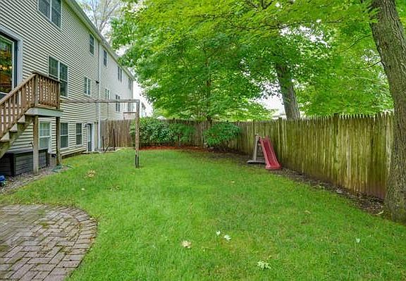 Better than new. Absolutely gorgeous town home in a great location near all major routes, shopping, restaurants and minutes from the commuter rail station. Everything in this home is top of the line and features hardwood flooring, crown moldings, wainscoting, stainless steel appliances,and granite counter tops. Wonderful open floor plan and all the rooms are large and airy with over-sized windows for lots of light. Beautiful finished lower level has a family room with loads of closet space, another room which can be an office and a full bath. Electric baseboard in basement. Hot water tank, 2017. The yard is level and fenced and there is a deck with a gas hook up and patio for all your summer entertaining. Cable in all rooms except dining room. Please check out the video.