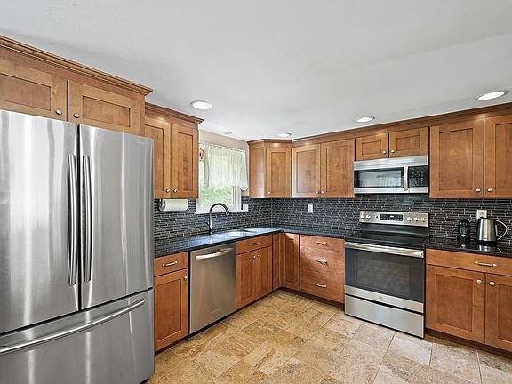 Are you a first time home buyer, or downsizer looking for a turn-key property? Come and see this 3 bed 2 full bath split level. This adorable property is ready for its new owners. The first floor offers beautiful updated cabinetry, granite countertops, stainless appliances & dining area. This kitchen is open to a sunny living room with a wood burning fireplace. Additionally there a 3 bedrooms and an updated full bath. The walk-out lower level includes a wide-open versatile living space perfect for a family room or additional in-law space if needed. There's a kitchenette & wet bar, another wood-burning stove, the 2nd bathroom, office/play area, laundry area & tons of storage. The backyard is amazing & backs up to the town-owned, 58 acre Henrich Property. BONUS: Central Air, updated windows & many, many updates. Please wear gloves and masks during your showings.