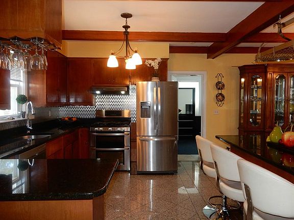 - Kit Dscrp: Countertops - Stone/Granite/Solid, Flooring - Stone/Ceramic Tile, Breakfast Bar / Nook, Kitchen Island, Closet, Ceiling - Beamed