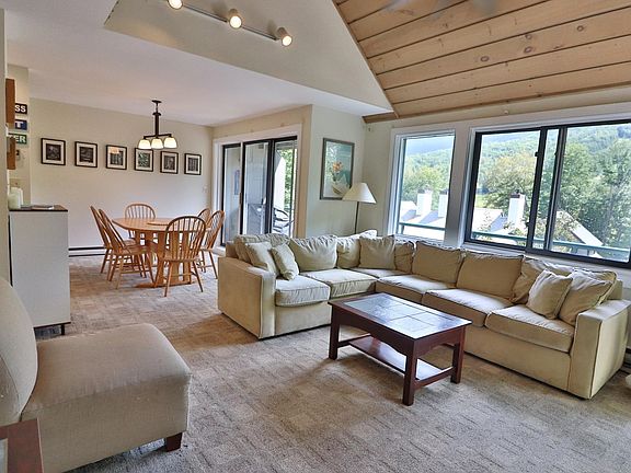 AWESOME LOON MOUNTAIN VIEWS! Coolidge Falls is located across the street from Loon Mountain so you will not have far to go for skiing. This duplex unit, 3 bedroom town home with 2 and half baths offers a spacious, open concept kitchen, dining and living area with a wood burning fireplace, vaulted ceilings, lots of glass and plenty of room for entertaining and family fun. The master bedroom with a private bath is on the top floor and the lower level has 2 bedrooms, full bath and laundry room. Lots of nice upgrades include, newer appliances, wood flooring, carpeting, tile, 3 Rinnai propane direct vent heaters and expanded deck with hot tub offering great Loon Mtn views. Situated on town water and sewer included in taxes at no extra cost. This home is really the perfect size, lots of space yet easy to care for, close to everything and a fantastic southern exposure for all day sun with terrific views of the Loon slopes! Don’t worry about needing to stock it up as it is being offered fully furnished and equipped, linens, household items and most decorations. All you need is some hangers for your clothes and you are good to go!