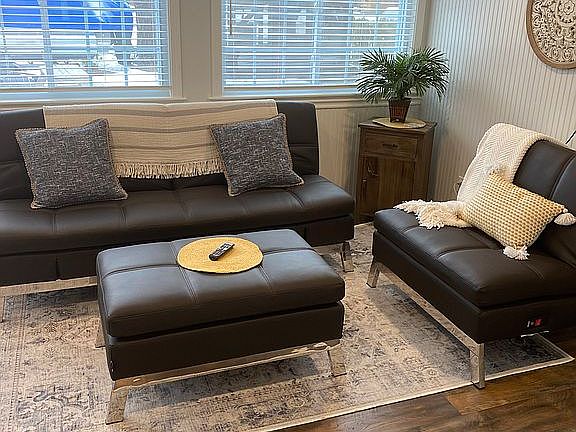 BEAUTIFULLY RENOVATED PARK MODEL ON HUGE CORNER LOT. Newer roof, siding, flooring, newer heating system with central a/c . New 8x10 Shed with washer dryer, screened canop and a low maintance gravel lot. 2 full bedrooms for plenty of guests. Pellet stove , brand new on demand hot water heater. Granite counters in kitchen and bath. Commercial ice maker. and high end stainless appliances. Custom coffee and bar stations. Expanded living room with room divider for sleeping privacy. Four post screened in with electricity and ceiling fan.