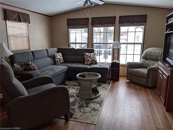 Seasonal Getaway in popular CountryLife Resort. Rare 3bdroom on an oversized lot! Lots of room for entertaining family and friends. Northlander Cottager Escape 14 ft wide model featuring Vaulted ceilings & lots of windows, 10x20 sun-room.Natural Gas heat and municipal services. Escape the city with your family & start enjoying the summer! Fully furnished, turn-key. Lots of room for everyone, Built-in bunk beds in 2 bedrooms, pull-out sofa bed included. The resort features 5 pools, splash pad, clubhouse, tennis court, playgrounds, mini-golf & a short walk to the beach. Gated resort w/security. Immediate closing available. Be ready for opening day and enjoy this to the fullest. Seasonal use for 7 months 2021 Site fees, Hydro Deposit and HST Total $5289.80.