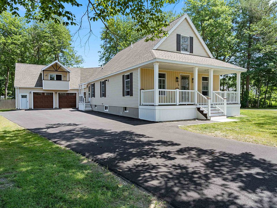 Custom multi-generational 2-unit home has been beautifully updated. Enter into the open concept cathedral living/kitchen/dining area on the main level with brand new kitchen cabinetry, quartz counters, stainless appliances and new tile flooring. The oak stairway leads to a lofted sitting area with hickory floors and a gorgeous master suite with double walk-in closets and master bath with a double sink vanity. Back to the main level, there are 2 additional bedrooms, a full bath, pantry, laundry room, and an office/mudroom with built-in cabinetry. The second unit consists of a cathedral dining/living room area, all new kitchen with stainless appliances, bedroom, den/office, 3/4 bath, lots of closet space, and a covered balcony. The interior was professionally painted, top to bottom. Most of the flooring consists of modern porcelain tile & hardwoods, all professionally installed. The 3-4 car garage has three full size garage doors and is accessible from both units & outside. Both units have separate heat, electric & laundry rooms. A Farmer's Porch, 2 separate driveways, vinyl siding, vinyl and wood decking, vinyl railings, a newer roof and landscaping make this home complete. Maintenance free outside and renovated inside make this a superb find! OH Sun 8/11 2-4pm