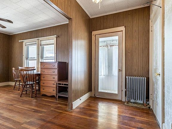Hurry! Super opportunity for investor/contractor/handyman!! This typical 5/5 Two family awaits your attention. Both floors similar. 1st has enclosed 3 season front porch, large dining and living room, 2 bedrooms both with closets, ceramic tile bath, good size eat in kitchen with pine cabinets and enclosed 3 season rear porch. 2nd floor has similar layout. Full unfinished basement has one newer steam/oil heating system and updated c/b panel. Exterior has white vinyl siding, mostly replacement windows thru-out, parking for 2 cars and huge level fenced enclosed yard. Interior needs quite a bit of updating. Be quick as this one has a lot of upside. Sale is subject to obtaining a License to Sell.