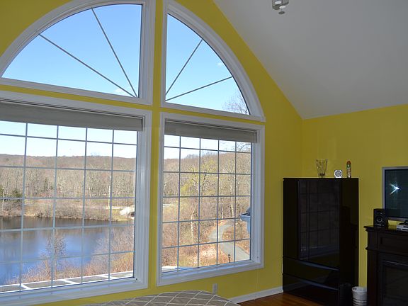 One of a kind beautiful home! Floor to ceiling windows, open floor plan, full of light and a tranquil feel. Upstairs are three bedrooms and two full bath. Master bedroom suite with tall windows and view of the pond. This home offers a sun-room in the front and a solarium in the back and a large deck that has plenty of room to entertain on those summer days. On the pond sits a gazebo to enjoy on moonlit nights. This house comes with the right to use the pond for fishing and boating as per the owner. Call today!