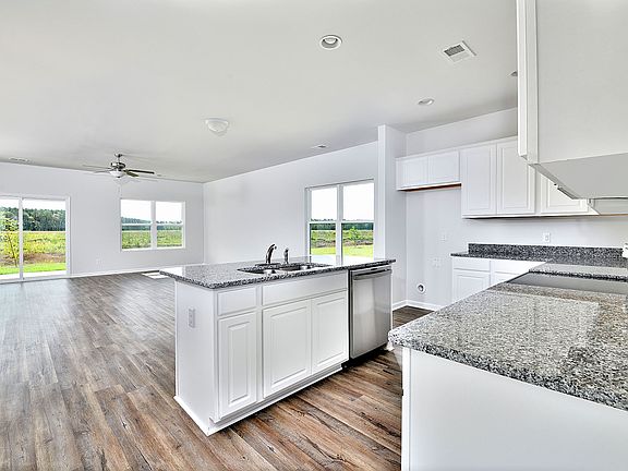 This two-story home comes with four bedrooms and two and one-half bathrooms. A flex space is available just inside the front door. An open kitchen, eat-in area, and spacious family room. The primary bedroom, which has a vaulted ceiling, leads to the primary bathroom with a separate garden tub and shower, dual vanities, and a generous walk-in closet. Each bedroom upstairs also has a walk-in closet, and they share another full bathroom with dual vanities. In addition, the second floor contains a loft space.