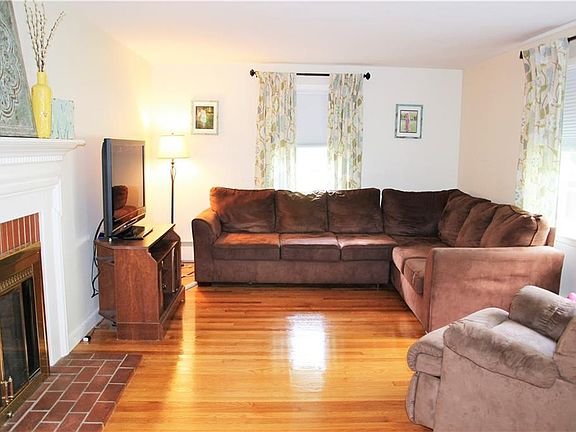 Perfect starter home in North Smithfield. Located on cul-de-sac so only traffic are the neighbors! Huge yard to play in at .89 acres! Quaint and charming, you will love the beautiful hardwoods that are throughout the house. The kitchen is clean and pristine with perfect amount of cupboards and counters with door to the deck for EZ grilling and outdoor dining. The Living room features a beautiful working fireplace with nice mantle and lots of natural light. All 3 bedrooms are a good size with hardwood flooring. The bathroom is also very spacious with Tub/Shower and large vanity. On lower level is a finished playroom with natural light and a lavette and Entrance from the garage. Plenty of storage in the unfinished area of the basement. The backyard is bordered by trees for absolute privacy. Serviced by public sewer and updated well. Come see today! There is no Google Street View. you are welcome to drive by.