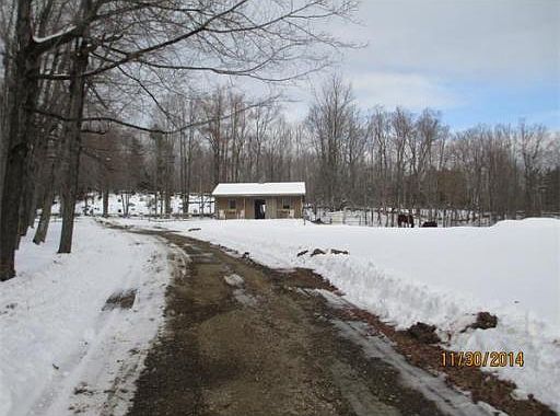 Looking for a small horse farm right next to your home? Two parcel property with a total of 4.3 acres within walking/riding distance to DAR State Forest. Trails out your back yard! 14 miles to Northampton! Two bedroom home which could easily be converted back to a three. Beautiful stately stone fireplace with wood stove insert. Two baths and a family room. Sliders lead out to a private goshen stone patio, large yard and barn. Barn consists of two run-ins that open to a field and a corral/riding ring, two tack rooms and hay storage. Year round electricity and water to barn. New on-demand hot water heater in basement of house. Also, rooms in basement that could be converted to more living space. If horses aren't your thing, still schedule a showing as barn could be used alternatively as workshop, studio, motorcycle storage or garden shed.
