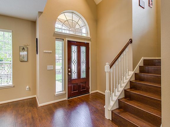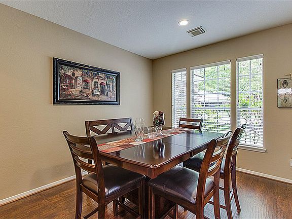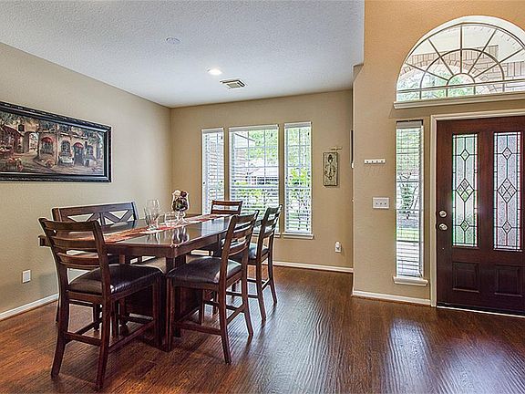 Beautiful 4/2.5/2 family home on cul-de-sac street in Alden Bridge. Bright and open floorplan features wood floors, formal dining, & family room with w/high ceiling and fireplace. Updated kitchen w/gorgeous granite & backsplash, breakfast bar, & stainless steel appliances. Spacious master suite w/double sinks, granite counters and separate tub/shower.Updated hardware and fixtures throughout. Great backyard w/large deck and full sprinkler system.Walking distance to parks and Buckalew Elementary.