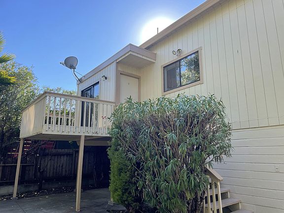Creekside upstairs duplex unit with large and very private outdoor area, carport and a large storage room below with washer/dryer hookups. The apartment has 12 foot ceilings to keep it cool, a patio off of the living room and a spacious kitchen. Located in the older area of San Rafael, the neighborhood is quiet and friendly. The apartment is freshly painted, very clean and has newer carpet. Water included in Rent One year lease is required, no smoking, no pets. Plenty of parking.