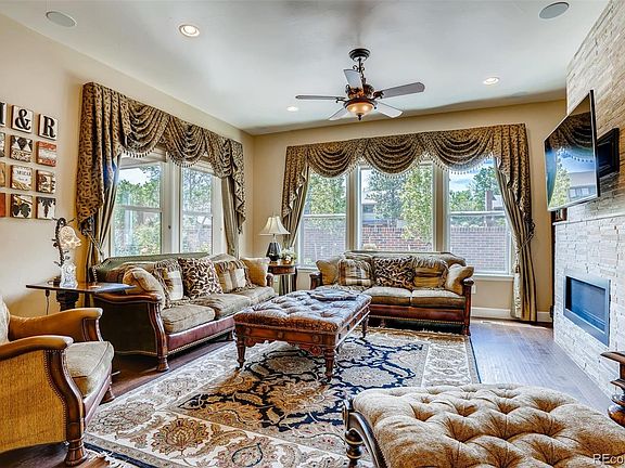 Don't miss this rare opportunity to own one of the largest and most elegant patio homes in the Willowcroft Manor community. The floor plan centers around a spacious great room with a gorgeous floor-to-ceiling stacked stone fireplace, ample seating room, a gourmet kitchen featuring a massive island, stainless steel appliances, slab granite countertops, glazed cabinetry, and eating nook. Additional rooms include an office, formal dining room, and two bedrooms, each with an en suite bath. The master suite features a dramatic vaulted ceiling, a luxurious and spacious bathroom, and huge walk-in closet. Additional special features include hand troweled walls and ceilings, upgraded light fixtures and ceiling fans, crown molding, plantation shutters, custom window coverings, and built-in speakers. A full unfinished basement provides limitless storage or can be finished to add up to 2700 sf of living space. The backyard is an oasis with a private covered patio, built-in fire pit, granite water feature, and extensive landscape lighting. Close proximity to downtown Littleton, the South Platte trail system, and Columbine Country Club.
