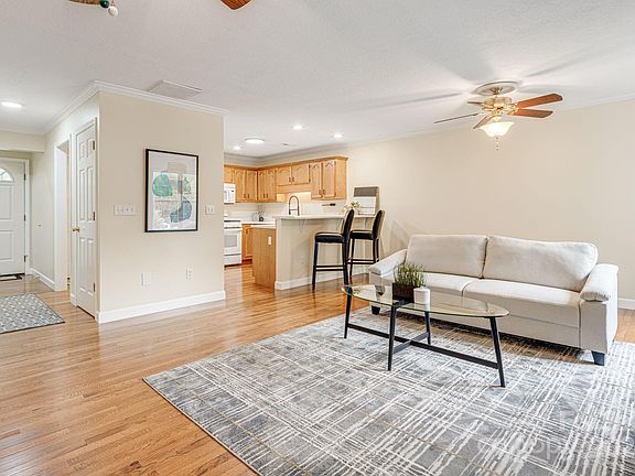 South Asheville! Willoughby Run townhome features modern lighting fixtures, a new roof, gutters, a transferable home, and a crawlspace warranty! All hard surface flooring throughout. Light, bright interior, open site lines from the living room with gas fireplace to the kitchen offering ample counter space, cabinets, new gas oven, and pantry. There is a half bath for convenience. Enjoy your private back-covered deck overlooking greenspace, or sit on the front porch for a more social setting. The upper level features two spacious bedrooms with full en-suite bathrooms and a dedicated laundry room. The one-car garage offers pull-down stairs, providing attic access with a floored storage area.