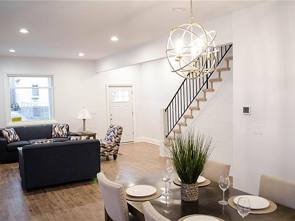 This MUST SEE newly renovated home is tucked on a quiet dead end street. Beautiful wood floors flow throughout the open living & dining room. Kitchen boasts high end finishes including microwave drawer, new stainless steel appliances, cabinets, granite counter tops, and a large kitchen island. Master includes walk in closet, & en-suite bathroom shows off a soaking tub with skylight above. The 3 skylights give this master lots of natural light. The 2 sizable bedrooms offer ample closet space. Bathrooms feature top of line fixtures, including blue tooth, an 8 jet body sprayer, & gleaming marble floors. Laundry room on main floor for extra bonus! The covered deck off kitchen includes ceiling fan & is perfect for outdoor entertaining. Deck leads down to fenced yard and 2 car garage. Includes brand new Roof, HVAC, Hot Water Tank, Siding, & Windows. This cozy home is conveniently located minutes from Downtown Pittsburgh, surrounded by public transportation, and includes a 1 YEAR WARRANTY!