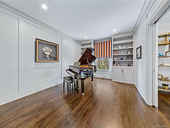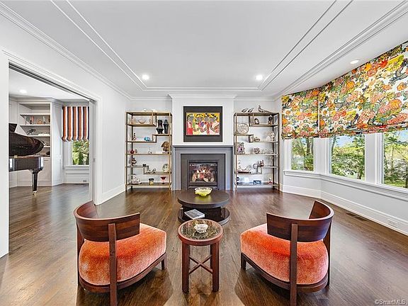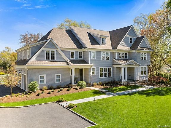 Modern luxury at its best! This better than new home, built in 2016 by HOBI Award winning builder SIR development, is graciously sited down a private driveway, surrounded by lush manicured lawn at the end of a premier central Westport cul-de-sac. Stunning, light-filled spaces feature transitional interior design elements throughout the home. On the main level you are greeted by an impressive foyer, bright dining room, living room with fireplace and a home office with modern built-ins. The gourmet chef's eat-in kitchen with Calacatta marble and stainless steel accents opens to a family room with beamed ceiling, fireplace, shiplap paneling and walls of glass doors to the bluestone patio overlooking the private and picturesque yard. On the upper level, the luxury owner's suite features a fireplace, dressing room and spa bath. Four additional bedrooms, three baths and a spacious windowed laundry room complete the upper level. The finished lower level offers a media room, play room and 6th bedroom- perfect for an in-law or au pair suite. Custom lighting inside and outside the home. Top of the line appliances, fixtures, and finishes. Set on over an acre, the professionally landscaped property offers sunny southern exposure, an organic vegetable garden, an outdoor kitchen and space for a pool/pool house. This coveted location is close to Westport's award winning schools, beaches, shopping and commuter routes.