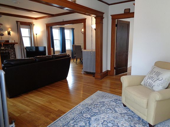 Exceptional 5 rooms plus bath. Sensational golden hardwoods all around. Fireplaced living room with a huge built in window seat. All new double sealed heat efficient windows. Chefs kitchen will impress-new counters, full slate of appliances, an abundance of cabinetry, butlers pantry, et al. Both kitchen and bath sport brand new tiled flooring. Speaking of the bath, an excess of newer fixtures, oversized vanity, new shower head, much to enjoy. Both beds are spacious--the master has a fabulous walk in closet. All at 1st floor slice of 2fam. Private balcony at rear of prop with green views. Tree lined neighborhood. Laundry connections at basement. Parking is 1 garage space + 1 in drive. Reduced half fee applies. On pets cat only considered. Start date is February 15 to March 1 latest. CHALLENGES COMPARISON ! Call Jack Lambergs, Ingram Realty