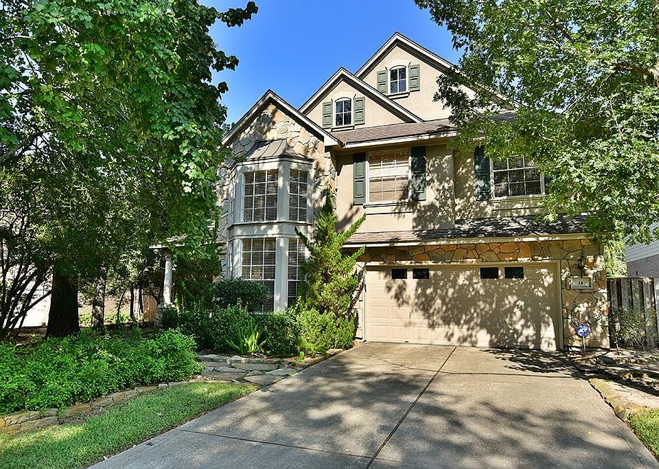 Come see this gorgeous Life Forms home on a quiet cul-de-sac street in The Woodlands with your very own back yard oasis! Island kitchen is open to the main living area-perfect for entertaining or keeping an eye on the little ones. Formal living room and formal dining room offers a flexible floor plan. Huge Primary suite has sitting area with fireplace, walk-in closet, tub plus shower, & private balcony that overlooks the back yard.Study or bedroom downstairs offers privacy & a beautiful view of the back yard oasis with pool and spa, and room left over to play. The split plan offers the primary suite on one side of the home, and the other 3 bedrooms, game room, and two full bathrooms on the other side. Oversized Garage! Zoned to fantastic CISD schools, and has great access to shopping, restaurants, and all of The Woodlands' fabulous amenities.