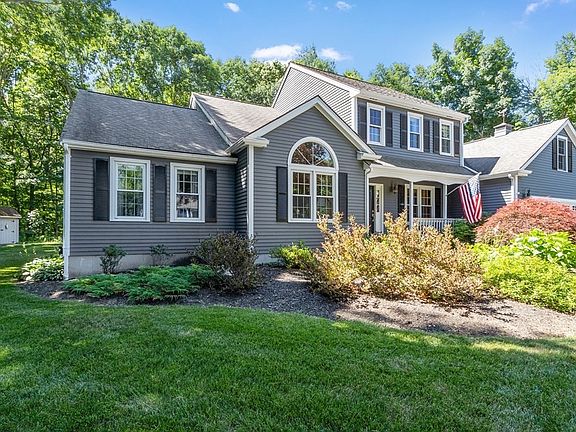 Driving up to this Contemporary Colonial you will be greeted by beautiful landscaping, paver walkway & farmer's porch. As you walk into the two-story foyer, flanked by formal living rm w/ vaulted ceiling & dining rm w/ crown molding & wainscoting. The generous eat-in kitchen features rich wood cabinets, stainless steel appliances, a large granite island w/ pendent lights, granite throughout & sliding door to the deck. Directly off the kitchen is the family rm w/ wood fireplace & recess lighting. The large first floor master en-suite is highlighted by vaulted ceiling, spacious walk-in closet, updated master bath w/ skylight & tiled shower. Completing the first floor is a sun-filled sitting rm, laundry, half bath & gleaming hardwoods. An additional three large bedrooms & full bath on the second floor. The lower level has a large rec room w/ wet bar as well as plenty of storage. Enjoy spending time in your private backyard sitting on the deck or toasting marshmallows on your patio firepit
