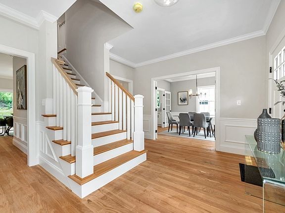 Stratton School Stunner! Classic Center Entrance Colonial with a versatile layout conducive to working from home or multi generational living! The 1st floor features formal gas fireplace living room, dining room w/ French Doors, butlers pantry complete w/ sink & bev fridge, large fully applianced kitchen w/ gas stove, island seating, top of the line appliances, dining area w/ a slider leading to the yard, 1/2 bath& bedroom ,which is a great home office, complete this level. The 2nd flr boasts 4 generous sized bedrooms all with custom closets & one with a full en suite complete with double sinks. Common full bath w/ laundry finish this level. The primary suite is situated on the 3rd floor with seperate seating area, full bath & custom closets. Fully finished family room on the lower level with additional bath for workout room etc. plus additional new foundation for storage area. Direct entry garage, multi zone Nat Gas HVAC & fully landscaped yard on an established lot. Pack your boxes!