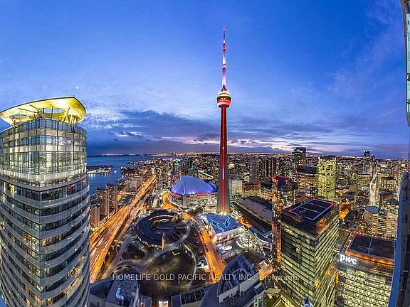 Million Dollars Everlasting Pano breath-taking Views Of Skylines, Lake, Cn Tower, city. Must Be Seen To Appreciate Luxe Corner Well-maintained Unit On 51 Flr. Top To Bottom Upgraded Finishes. Floor To Ceiling Windows Allow Natural Light Throughout Day, Spectacular Light Show In Evening. Hard To Take Eyes Away From Views From Spacious Living/Dining room, this downtown core 2 Bed+Den features the Direct Access To Underground Path. Steps To Longo's, Union Subway Station, Rogers ctr, Scotia Bank Arena, shopping centre , Award winning Amenities include Party Room, Gym, Indoor Pool, Dry/Wet Sauna, Cold Plunge, and more.