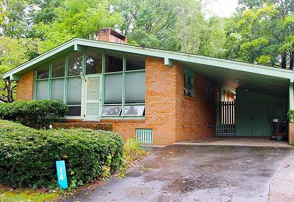 Huge Price Reduction & potential! Mid-century A frame with carport in desirable West Asheville. Cul-de-sac at both ends of this quiet, walk-able street with no thru-traffic. Large windows in living room w/tons of natural light. Open concept floor plan with a beautiful brick fireplace. Original hardwood floors throughout most of home (possibly under carpet, buyer to confirm). Master features en-suite bath & access to backyard from bedroom. Huge basement that could be finished for extra sq ftg.