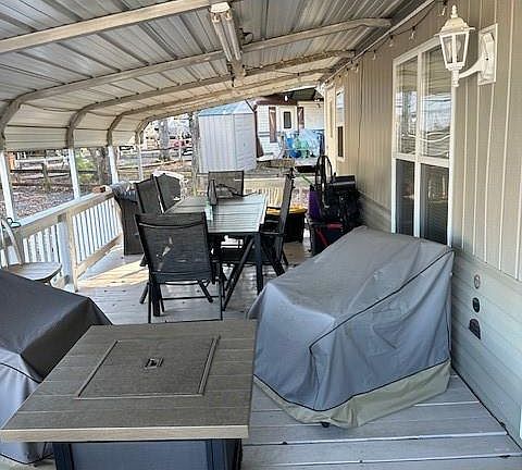 Wow rare find 2 lots park model with covered deck 2nd sleeping area in 2015 Sports Trek camper 320VIK which is located under a camper shed hooked to sewer and access to water also fulltime. 2nd metal shed on main lot with room to fit a pontoon, plenty of parking at this listing.