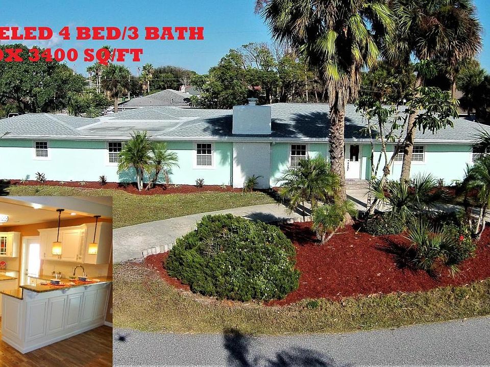 Come see this BEAUTIFULLY remodeled home with 4 bedrooms and 3 bathrooms on a corner lot.This home sits only a couple blocks from the Ocean!There is gorgeous wood plank tile throughout the main areas and carpet in all the bedrooms.The kitchen is massive and has plenty of space for guests.There have been many recent updates including a NEW Roof, bathrooms, granite in the kitchen/bathrooms, Stainless Steel Appliances, Hot Water Heaters, and many more upgrades.There is a large screened in back porc h for entertaining.The back yard has a nice White Vinyl Fence and a side gate for a large boat/RV.There is a circular driveway out front and a side driveway for plenty of parking.Don't miss this opportunity because LARGE remodeled homes like this on the beach don't last long!
