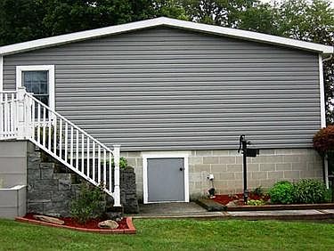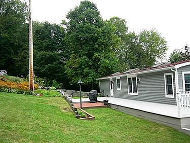 This ranch home is just like new. Set on 9 lots, the home was originally a double wide but gutted inside and tastefully rebuilt with solid oak trim, doors, Anderson windows, hardwood flooring and dry wall and insulation. The roof has architectural shingles and the home has a foundation with 4' high crawl space, which has an entrance door. Very attractive deck surrounds 2 sides of the home. Lush landscaping leads to the model garage with 3 doors & room for 5 cars. Top quality throughout.