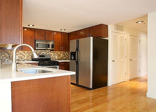 Gorgeous recently remodeled 3 bedroom, 2 bath with 1 parking space included in covered, secure garage. Elevator building. Stunning NYC views. Stainless steel appliances, hardwood floors, granite, full size W/D in unit, attention to detail. Less than 1 block to Restaurants and NYC bus stop. Great Location. Small pets MAY be considered with a pet fee, depending on breed, size, etc. Please submit picture. No broker Fee!