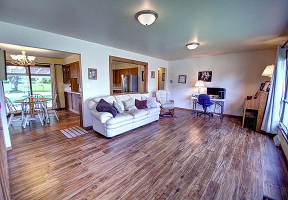 MOVE IN READY 2 BEDROOM 2 BATH RANCH HOME SITTING ON A LARGE CITY LOT. PARTIALLY FINISHED BASEMENT WITH EGRESS WINDOW FOR A 3RD BEDROOM. COMPLETELY UPDATED MAIN FLOOR BATHROOM. NEW ROOF, FLOORING, FURNACE, A/C, WATER HEATER, APPLIANCES (FRIDGE, STOVE, MICROWAVE, DISHWASHER), BREAKFAST BAR WITH CUT-OUT, MAIN FLOOR LAUNDRY, AND 26.5' X 45.5' CEMENT PAD IN BACKYARD.