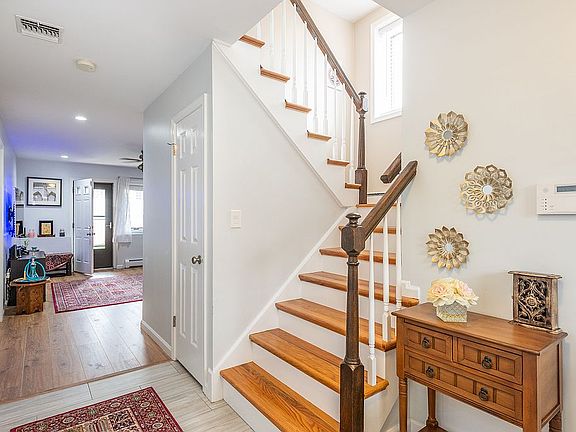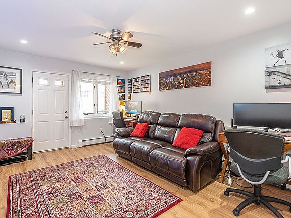 Impeccable tri level end unit townhouse offers open floor with all spacious rooms,LR,DR,EIK 2 BDRMS, 2.5 BATHS, fenced in yard, patio, deck , 1 car gar & 1 car parking spot. NYC commuters dream. Welcoming entry foyer on ground level offers spacious family room with access to patio & fenced in yard . Ideal open floor plan on main level offers living room with sliders to deck, updated kitchen with breakfast bar , dining room and powder room. The upper level offers 2 bedrooms & 2 baths including the spacious master bedroom with en suite bath and walk in closet. Ideally located 10 miles from NYC , near shopping, restaurants and major highways. Features private fenced in yard patio, deck,hardwood floors, central air, 3 zone heating, recessed lights tons of storage.