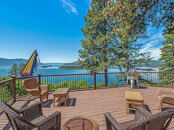 Picture perfect privacy with a birds eye view. Imagine sipping coffee on your expansive decks experiencing the intricate dance of local Bald Eagles soaring over the crystal, pristine waters of the great Lake Pend Oreille. Just you and North Idaho's beauty, leave the chaos behind. At the end of the road find a magical estate featuring a main home, separate 1 bed. guest cottage and separate 1 acre water view lot. Main home has 4462 sq ft, 4 bedrooms, 3 baths, custom kitchen with incredible water views, quartz counters, pantry with attached formal dining area. Great room with a wall of windows, slider to large deck and cozy fireplace. Master suite has picture windows, big water views, rich, solid redwood panels, skylight, his/her walk-in closets, en-suite with sauna, tile shower and jetted tub. Separate guest suite with private entrance, wet bar, private bath and great lake views. Additional bedrooms and bath on main level one of which has a walk-out to private patio and garden. The one bedroom,1 bath 710 sq ft separate guest cottage has big water views from the kitchen and private deck. Local, natural stone arches frame the 3+ car garage and carport. Tasteful gardens and landscaping surround and enhance this incredible setting. Words cannot fully describe this unique property. You must experience it for your self. Possible owner carry...