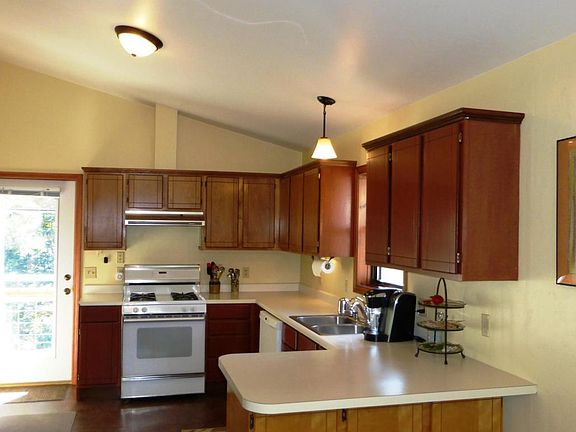 Where Mother Nature is the major developer this 3 bedroom, one and a half bath home is nestled among mature trees and gorgeous gardens just minutes from town. The inviting, light and bright kitchen & dining area opens to a deck with amazing views of the valley. The lower level walks out to the beautifully maintained backyard with an abundance of vegetation, gardens and landscaping. Many extras include a new front & storm door, fresh paint throughout, new dishwasher, new skylight, new lighting fixtures throughout, freshly stained kitchen cabinets, fenced yard, gravel parking area, ample indoor storage and a storage shed.