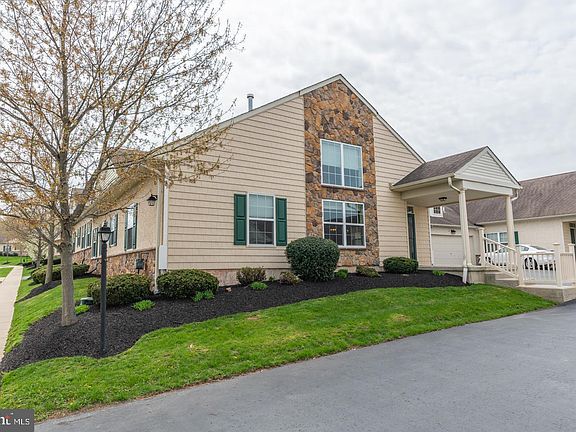 Move in ready, this sunny and bright, 3BR 3 bath end unit townhouse in the highly desired 55+ community of Mill Run in North Wales (Upper Gwynned Township) awaits its new owner! Lovingly cared for by its original owners, the entire home is freshly painted throughout. A lovely hardwood floored foyer with coat closet welcomes you, and opens onto a spacious carpeted living room with gas fireplace, vaulted ceiling, ceiling fan, and expansive windows, which were recently replaced. The eat-in kitchen has beautiful 42~ cherry cabinets, tiled backsplash, and ample counter space, a Whirpool refrigerator, GE dishwasher, garbage disposal, and microwave, nice pantry, and access to the 2 car oversized, heated garage with insulated garage door. The carpeted dining room is between the living room and kitchen and offers plenty of room for your dining guests! Generously sized first floor master bedroom with en suite master bath and large walk-in closet, complete with built in shelving and lockable drawers. Steps away from the master is the second bedroom and hallway full bathroom. The second floor loft has a large third bedroom with en suite bathroom, ceiling fan, and built in desk creating a cozy office space. The first floor also has laundry room with stationary tub, large pantry, and (inside) access to the garage. Beautiful Hunter Douglas window treatments. The stucco exterior, which was completely redone within the last year, has a 10 year transferrable warranty! Home also has an alarm system. Hassle free living where you'll love not worrying about snow removal or yard maintenance. All rooms are wheelchair accessible. Conveniently located to routes 309, 202 and the PA Turnpike as well as to extensive shopping. Just sit back, unpack, and enjoy your move-in ready home.