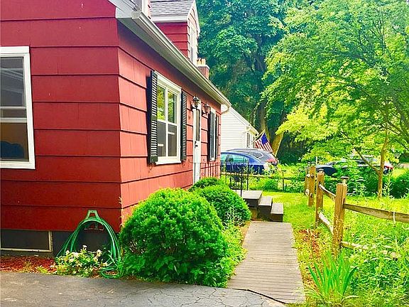 Charm and character abound in this adorable Cape Cod home, making it a warm gathering place for celebrations and the creation of memories. The home is nestled in a park-like setting, with mature trees and a lush landscape. Gleaming hardwood floors (refinished 9/2017) run throughout the first floor, while vaulted ceilings and a private balcony adorn the upstairs master suite (a master suite, with full bath, could be on first floor as well). The kitchen, living room, and first-floor bedrooms are all freshly painted. The first-floor bath (2 full baths in the home) was completely remodeled in 5/2017. New tear-off roof (6/2017), new gutters and soffits (11/17) a high-efficiency furnace (installed in 11/2015), New A\C system (5/2018), new dishwasher, oven and built in microwave (all installed in 9/2017)The home also offers a spacious workshop, hand-carved cabinetry, and a breezeway/sun room. Pittsford Schools!! New dark blue vinyl siding installed 05/2023, water softener installed 05/2023.