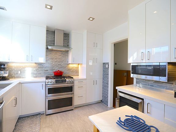 The new resident here will enjoy a spacious living room and a formal dining room with luxury modern finishes including wood parquet floors & a stylish stone fireplace mantel (decorative fireplace). The kitchen boasts quartz countertops and high end stainless steel appliances including a wine fridge, gas range (with a hood vent that vents to the outside), quiet dishwasher, under cabinet mounted microwave and a generously sized refrigerator (with ice maker & water dispenser). The bedrooms are well appointed with built out closets (oriented toward the rear of the flat). The primary and second bedrooms overlook the shared backyard. The newly remodeled immaculate bathroom features Robern cabinetry, a steam room inspired deep sunken jacuzzi & air bubble tub, rainfall shower head and a Japanese Toto bidet toilet. Shared backyard & pavered patio with terraced garden and a myriad of fruit trees.