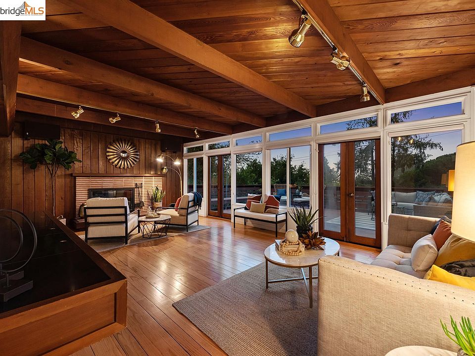 Step into this Midcentury Modern gem, offering 4BR/4BA and captivating views in a lush, secluded setting. Built in 1957, this lovely home is poised for its next chapter. Enter through the elegant, black-tiled foyer into an open-concept living area awash in natural light. The spacious living room features expansive glass windows, a brick hearth, and wood-beamed ceilings. Adjacent is the dining area and well-appointed kitchen. The main floor also hosts an office or guest bedroom—your choice. Enjoy your morning coffee or an evening cocktail on a vast back deck that overlooks both forest and bay. Upstairs, unwind in the primary bedroom suite, complete with a private balcony and dual-sink bathroom. An additional en-suite bedroom and a convenient laundry area round out this floor.The lower level offers its own secluded entrance, featuring an in-law unit equipped with a kitchenette, full bathroom, and built-in desk—perfect as an art studio or bonus room. You’ve got 2243 square feet of living space in all. Situated near UCB and Tilden Park, you'll have easy access to hiking, golfing, and our renowned Botanical Gardens. With AC Transit nearby and downtown Berkeley, Oakland, and San Francisco within minutes, this hillside haven offers the best of both worlds: serenity and convenience.