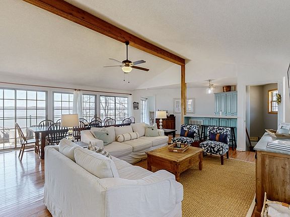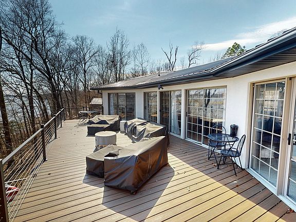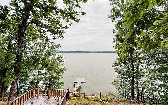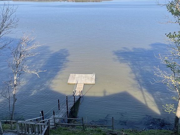 Beautiful waterfront home with private dock on Kentucky Lake (main lake), just north of Breakers and Paris Landing State Park! Expansive windows and a unique floor plan and home footprint designed to make the most of waterfront views. Many updates including new Trex deck, new HVAC, new metal roof with leaf guard gutters, and new paint inside and out! Stunning water views year round, from both inside the house and the two level deck. Private wooded setting! Great floor plan with two primary suites upstairs, both with private bathrooms. Open floor plan with a kitchen to one side and a wet bar to the other side. Rec room in the walkout basement with three bedrooms/bunk rooms (no windows in the downstairs bedrooms) and another full bath. New landscaping, paint and driveway. Great location with a neighborhood boat ramp located just two lots away. WK&T Internet available. Great for a fulltime residence, 2nd home or vacation rental!