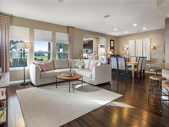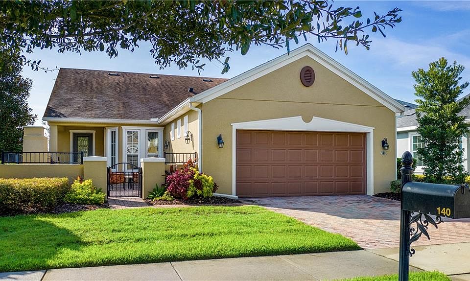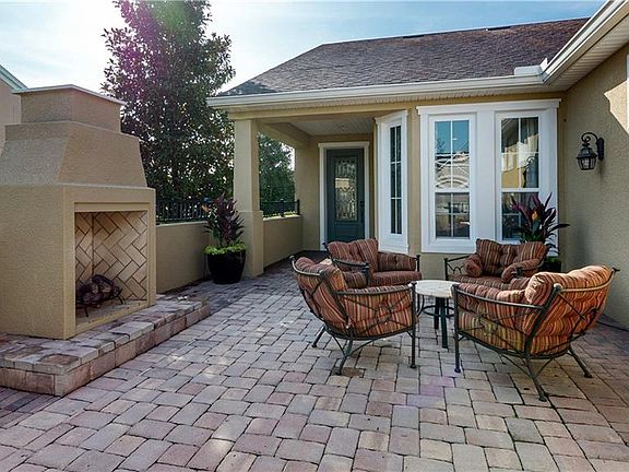 Location, Location, Location. This house is set perfectly on an oversized lot, with a green space view and no rear nieghbors, all within a stones throw of the amazing Trilogy Orlando Club house. This home has 2 bedrooms, 2 baths and has only been lived in for less then 2 years as it was build as a MODEL Home for Shea Homes. Walk into your very own courtyard which is an outdoor paved living space with a natural wood burning fire place, truly designed for relaxation and gathering with friends. Once you step inside this charming home you are welcomed with dark natural wood flooring, textured walls and award winning décor and furniture. The master bedroom has crown molding and views of the picturesque backyard with a paved garden patio. The second bedroom also has crown molding and wainscoting that make this room inviting for any guest. For those that still want to work...The office is set just out side the master bedroom and has a built in hardwood desk and cork wall. Trilogy is the premier active 55+ community in Lake County. The club house, named the Magnolia House features 57,000 sq. ft. of RESORT STYLE LIVING that includes a Restaurant & Bar, Great Hall, Game rooms, Golf Simulator, Indoor Spa & Showers, Award Winning Fitness Center, Award Winning Resort Inside/Outside Pool, Half Basketball court, Tennis & Pickle Ball courts and many activities which are planned by the in house management company. Check out the virtual tour!!!
