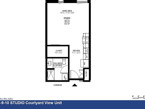 - Total interior livable area: 464 sqft