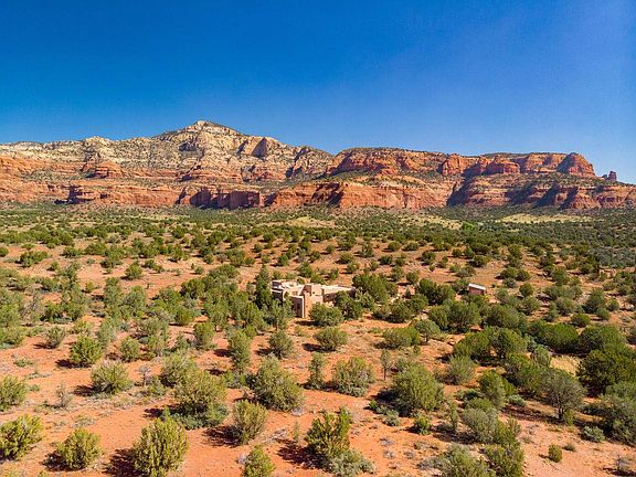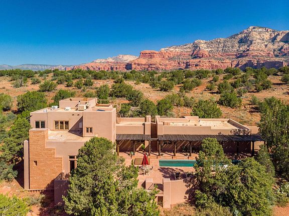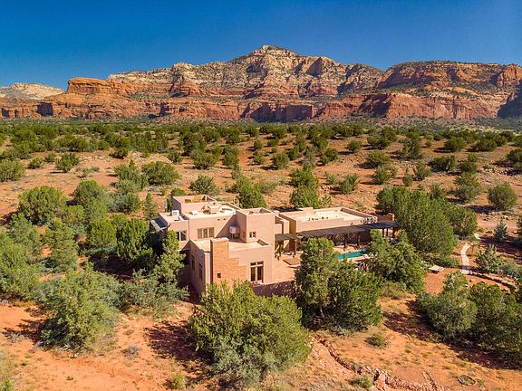 There is an immediate uplifting and peaceful energy captured by this Private Estate. The ''Waki Estate'' is a sacred, private Sedona sanctuary; truly one of a kind! This luxury home peacefully rests on over 17+ acres of natural, serene beauty in the heart of Sedona's most beloved Red Rocks. Backing to National Forest and nestled between Bear and Doe Mountains, the grand tranquility of this home estate and surrounding views is unmatched. Meditate near the pond, star-gaze on the rooftop deck, or soak in the lap pool/ spa near the calming waterfall. This gorgeous, finely constructed home invites the nature indoors with stacked stone and wood accents throughout. Enjoy an exquisite chef's kitchen, private master suite w outdoor rooftop shower, flagstone flooring w radiant heat, and much more!