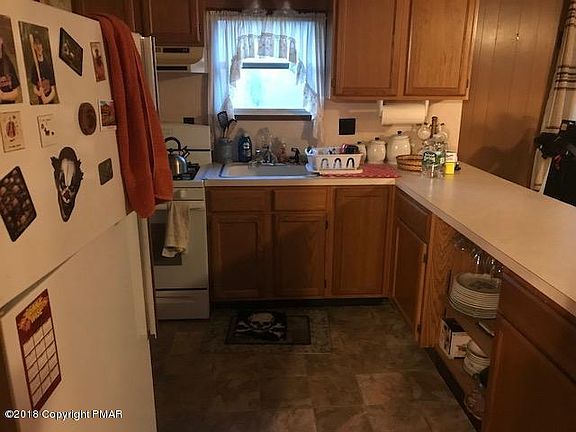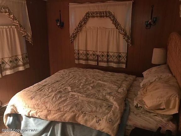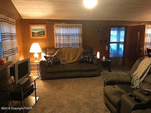 Cute and cozy ranch in the heart of the Poconos! Located just minutes from skiing, area attractions, and shopping, this home features 2 Bedrooms, 1 bath, Living room w/propane stove and sliders to deck, New carpet, new windows, upgraded electric, new plumbing, and full unfinished heated basement. New metal roof installed in 2016! Sold furnished. Beautiful winter view of Camelback ski mountain! Low dues community! A must see! Now is the time to purchase your piece of the Poconos!