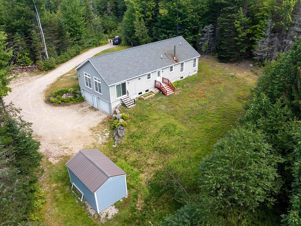 Minutes from golfing, hiking, fishing, skiing, snowmobiling, restaurants, shops and I-93 makes this the PERFECT location! Tucked away on 3+ acres you can't see this house from the road giving you ultimate privacy. Single level living with open concept kitchen/dining/living is perfect for entertaining. The spacious living space has large windows to let natural light pour in and during the winter months, use the pellet stove to take the edge off. Laundry room doubles as pantry and is conveniently located on the main level. Primary bedroom suite has a large bedroom and fantastic walk-in closet to store all your things. Private full bath with double vanity rounds out the suite. 2 additional bedrooms and another full bath compete the first floor. Lower level basement is waiting for you to finish it off into added living space which would be perfect for a game room! Direct entry garage is heated and features space for a workshop, too. The shed outside is perfect for storing your landscaping equipment and/or seasonal items. This property would be ideal as a full-time residence or maybe a second home in the White Mountains where you can come to get away and enjoy all that Mother Nature provides here! Move-in ready condition allows you to start enjoying the property immediately!