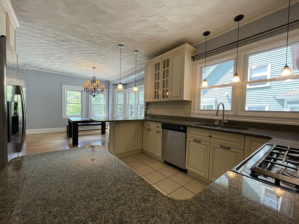 this spacious 4 BR 4bath 4 level stately Mediterranean stucco house situated in super convenient location with a short walk to the commuter rail station 20 min to Boston. The whole house was totally rehabbed in 2010. and now can be a delightful place to live with your family. close walk to a YMCA, sports fields, library, and town center with lots of restaurants. Spacious 4-Bedroom Home for Rent Ideal Location Near Train Station! Welcome to this beautiful 4-bedroom, 2.5-bathroom home, perfect for a family or group of friends. Located just 15 minutes from Legacy Place and a short walk to the train station, this property offers convenience and comfort in one! Key Features: 4 Spacious Bedrooms: Ample space for relaxation and privacy 2.5 Bathrooms: Fresh and updated with a convenient layout Four-Season Porch: A cozy spot to enjoy all year round Outdoor Patio: Perfect for entertaining or unwinding In-House Laundry: Washer and dryer included Parking: Both on-site and off-site options available for easy access Utilities: Tenants are responsible for electric, WiFi, and gas, making it easy to manage your utilities. Don't miss out on this fantastic opportunity to rent a spacious and convenient home near everything you need. Schedule your viewing today!