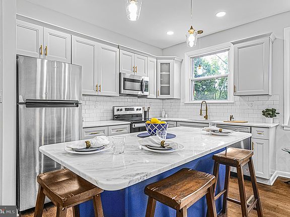Welcome to your dream home in Desirable Ambler! Nestled on a beautiful lot, and Complete with 3 Bedrooms 1.5 bath, the quality of craftsmanship is clearly evident as you move through each room. Travel into the bright entry with beautiful flooring and inviting Atmosphere. The Natural light that radiates through the Numerous Windows gives the main Level a Bright and Cheery feeling. Spacious living room and dining area will make entertaining a breeze. The Newly renovated Kitchen boasting Brand Stainless Steel appliances is a cooks delight, along with endless amounts of White Shaker cabinets, Natural Quartzite countertops, Large center custom BLUE island, recessed lighting, custom subway tile backsplash are going to WOW your visitors. Continue to the lower level to find a finished basement complete with half bath, Garage access, and Laundry area! Back on the main level notice the New Hall Bath and Nearby find 3 beautiful bedrooms complete with closets. Some Noteworthy features of the property include Central AC, Refinished Floors, Recessed Lighting and Freshly Painted throughout. There is a 1 car garage with interior access, driveway, and a very nicely landscaped roomy yard. Close to major commuting routes, schools, shopping and restaurants. The Impressive Upgrades, many amenities of this home and the beautiful lot will make this your home of Choice! Don't Miss this opportunity, Book your appointment today!