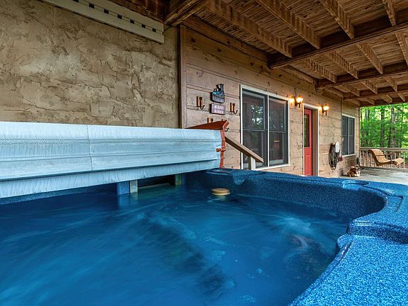 This 3BR/3BA cabin in 2,080 sq. ft. sits on a 0.96AC private wooded lot and is an active Short Term Rental (STR), this cabin grossed 47K in 2020 and $55K in 2021. You will be captivated by the warm and inviting ambiance of this home! The main level features an open-concept kitchen and island with a nearby dining area that overlooks the living room, which is the perfect spot for cozy evenings spent by the fireplace and admiring the year-round scenic mountain views through the windows - views that are even better from the wraparound deck which features plenty of room for family and guests! On the upper level, you'll discover a bonus room at the landing, perfect for a reading area or office, with its large prow-style windows providing natural lighting and serene views of the forest. Attached is the master suite, where you can wake up to picturesque mountain views every morning. The en-suite master bathroom offers privacy and convenience, complete with a walk-in linen closet. The terrace level is designed for relaxation and entertainment, with an open-concept family and game room, complete with billiard and air hockey tables. Unwind in the soothing hot tub on the terrace-level porch, enjoy the glow and warmth of the fire pit on the patio, or try your skill at the horseshoe pit in the lower yard, all surrounded by lush natural forest. Hiking, fishing, swimming, and kayaking/tubing locations along the Toccoa River are just a few miles away.